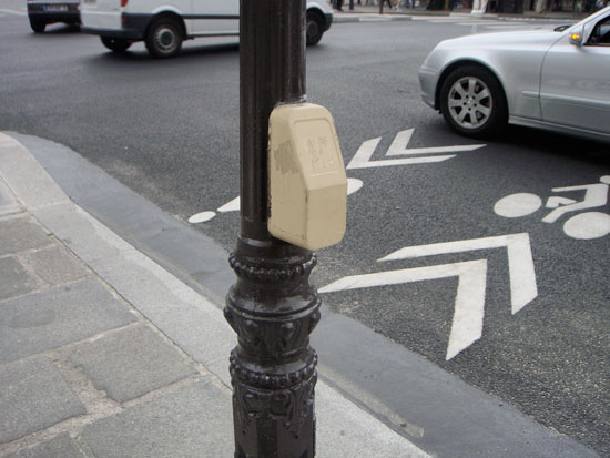 Régen nézem, hogy az útkereszteződésekben van a lámpaoszlopon egy doboz, amit a párizsiak bőszen próbálnak nyomogatni, hogy váltson zöldre a lámpa, csak éppen nincs rajta gomb, amit nyomogathatnának: