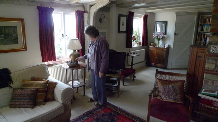 Két nap vidéken: Clare barátunk gyönyörűséges műemlék-házában. Megtudtam, hogy a ház szerkezetét alkotó fagerendák már a ház építésekor is antik darabok voltak, ugyanis eredetileg hajógerendákként szolgáltak! Ezért aztán mindenféle különös, érthetetlennek tűnő lukak vannak a gerendákban. Az egész ház gyönyörűséges, nincs egyetlen rendes függőleges vagy vízszintes felület. Este amikor a nekem kijelölt hálószobában aludni tértem, akkor riadtan éreztem-gondoltam, hogy az a kevéske jobbfajta bor is - úgy tűnik - igencsak megártott, mert nagynehezen, dülöngélve jutottam el az ágyamig. Percek múlva jöttem rá, hogy csak a szoba padlója lejt a legkülönbözőbb irányokba. Hűvös angol ház persze, így aztán boldogságos meglepetés volt, amikor az ágyba bújva finom meleg fogadott: elektromos ágymelgítő fűtötte föl az ágyamat! Na ezért mit nem adtam volna tavaly Palisban, amikor olvasni is alig tudtam az ágyban a hat takaró alatt, mert a könyvet tartó kidugott kezem lefagyott!mUtatok néhány fotót a házról.